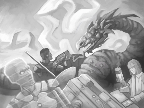 In addition to our cover artist, Avery Liell-Kok (whose excellent work you can see in the preview PDF), three interior artists contributed some fantastic work to Odyssey: Christopher Reach, Matt Morrow, and Daniel Wood.